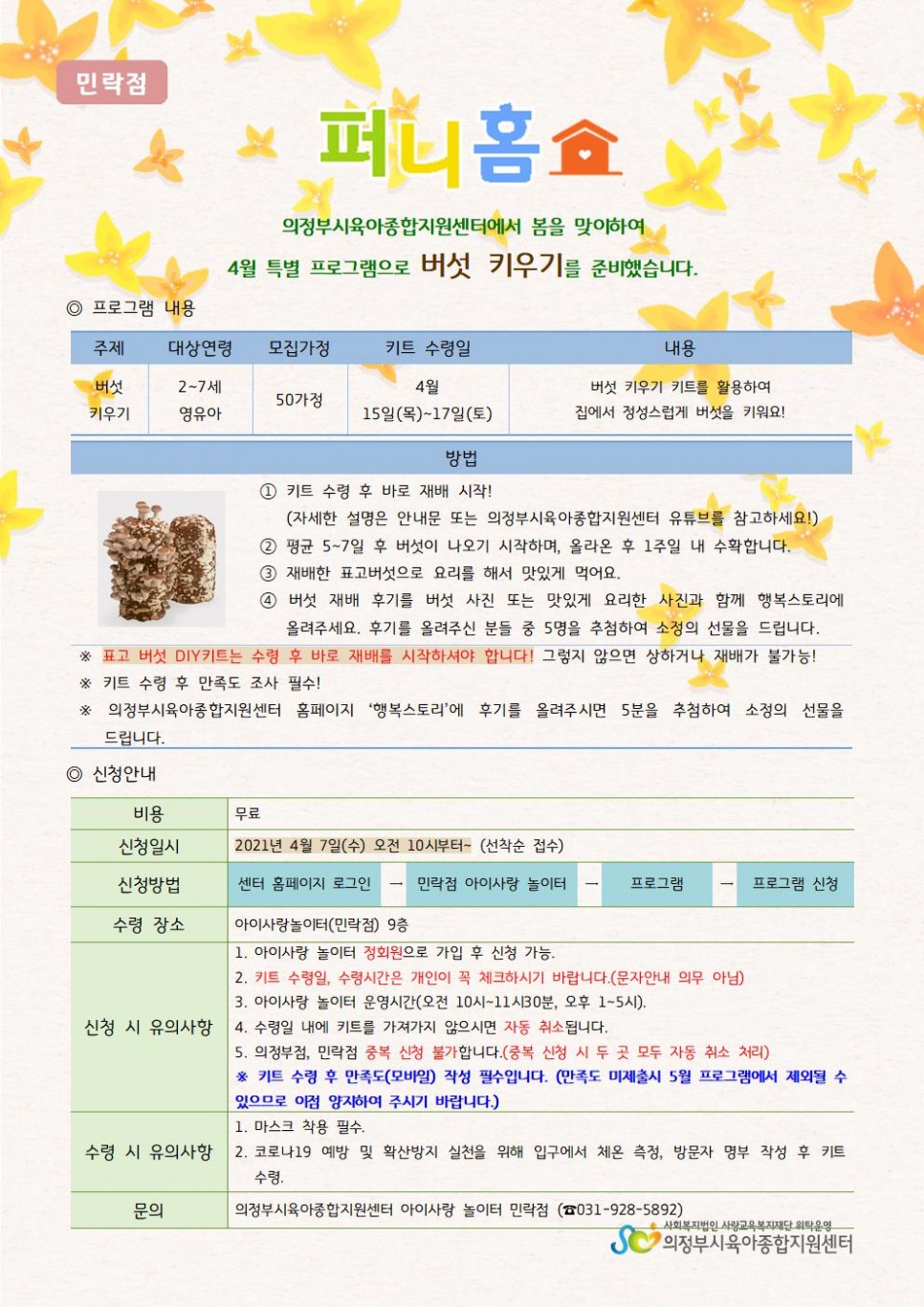 [민락점] 퍼니홈 4월 프로그램_버섯키우기 신청 안내 > 공지사항
