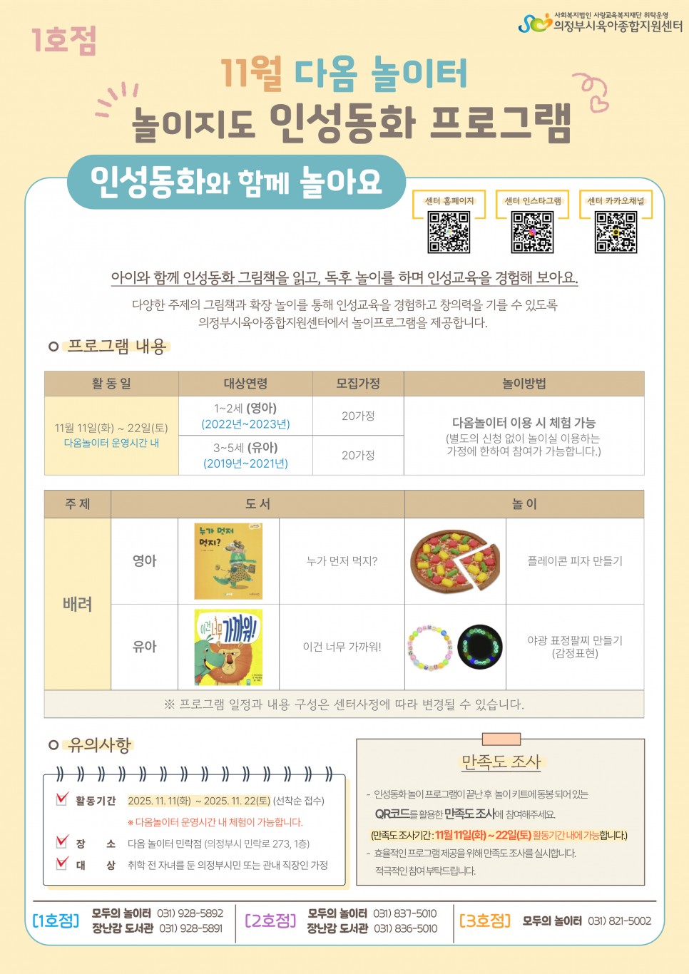 [다옴 놀이터] 놀이지도 인성동화 프로그램 ‘11월 인성동화와 함께 놀아요!’ 안내 > 공지사항