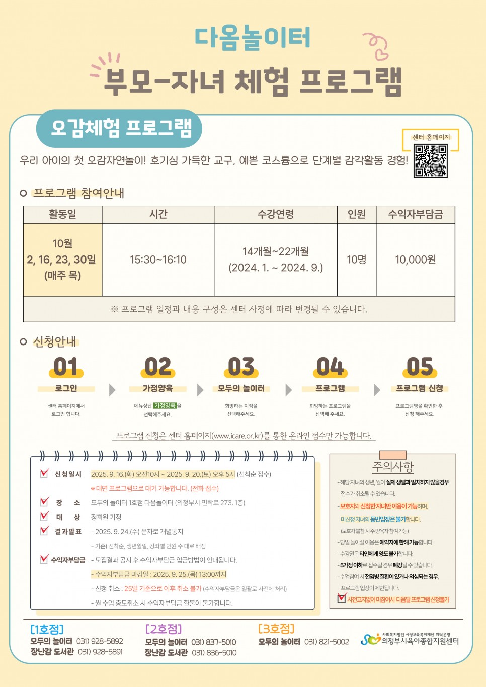 [다옴 놀이터] 10월 부모-자녀 체험 프로그램 안내 (오감체험 프로그램) > 공지사항