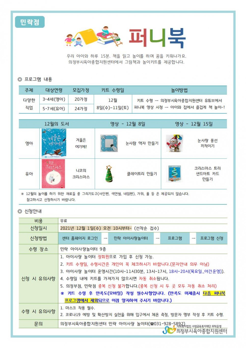 [의정부,민락] 책이랑 즐겁게 놀자! 퍼니북(12월) 신청 안내 > 공지사항