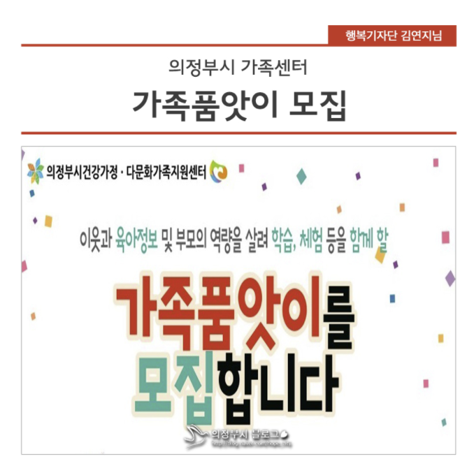 의정부시 가족센터 가족품앗이 모집 > 육아정보