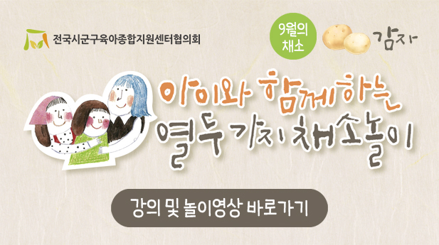 「아이와 함께하는 열두 가지 채소놀이」 9월 감자 편 페이지 정보 작성자 의정부센터 댓글 0건 조회 1,921회 작성일 2021-09-06 17:59 관련링크 https://www.youtube.com/embed/vQCYzIWEhJU 1026회 연결 본문 「아이와 함께하는 열두 가지 채소놀이」 9월 감자 편 웹진 URLhttps://aja.mnz.co.kr/7228 목록 이전글[퍼니쿡] 아이와 함께 영상을 보시고 즐겁게 요리해보세요! (9월) 21.09.07 다음글<퍼니북> 그림책 '섞어봐! 새로운 색깔의 탄생' 읽고 활동하기(유아편) 21.09.06