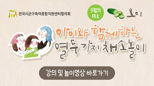 「아이와 함께하는 열두 가지 채소놀이」 3월 오이 편 페이지 정보 작성자 의정부센터 댓글 0건 조회 2,849회 작성일 2021-03-02 17:34 관련링크 https://youtu.be/VP4Y44NbPH8 1451회 연결 본문 ▲관련 링크를 클릭하시면 유튜브 영상을 보실 수 있습니다. 「아이와 함께하는 열두 가지 채소놀이」 3월 오이 편 웹진 URLhttps://aja.mnz.co.kr/7228 목록 이전글<퍼니북> 그림책 '크런치(부끄럼쟁이 공룡과 친해지는 책)' 읽고 활동하기(영아편) 21.03.02 다음글[인형극] 환경 요정과 에너지맨 21.02.23