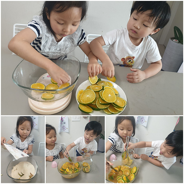 귤을 유난히 좋아하는 아이에게 특별히 이번 청귤청 만들기는 더욱 신기하고 재미있는 경험이 되었답니다.
