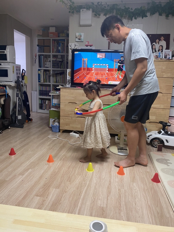 너무 더워서 실외활동이 어려웠는데 아빠랑 놀수있는 체육수업이 즐거웠어요