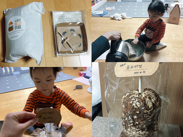 32개월 첫째 딸이 아빠랑 같이 버섯 키트 받아왔어요!