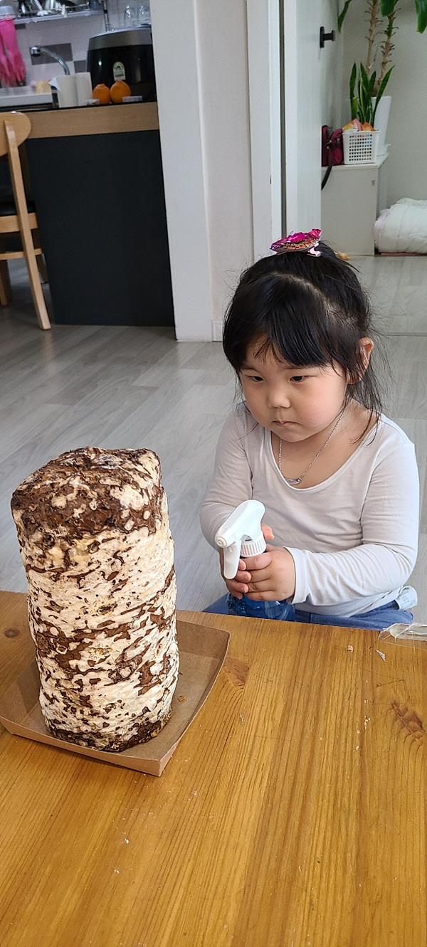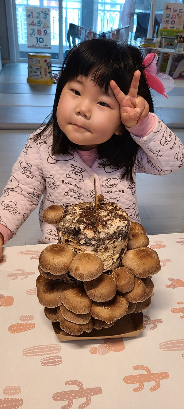 아이도 버섯 싫다고 할 땐 언제고, 무럭무럭 자라는 버섯을 보고 "쑥쑥아~ 빨리 커~ 맛있게 먹어줄게!" 라는 뭔가 무서운...소리를 참 다정하게 건네면서,