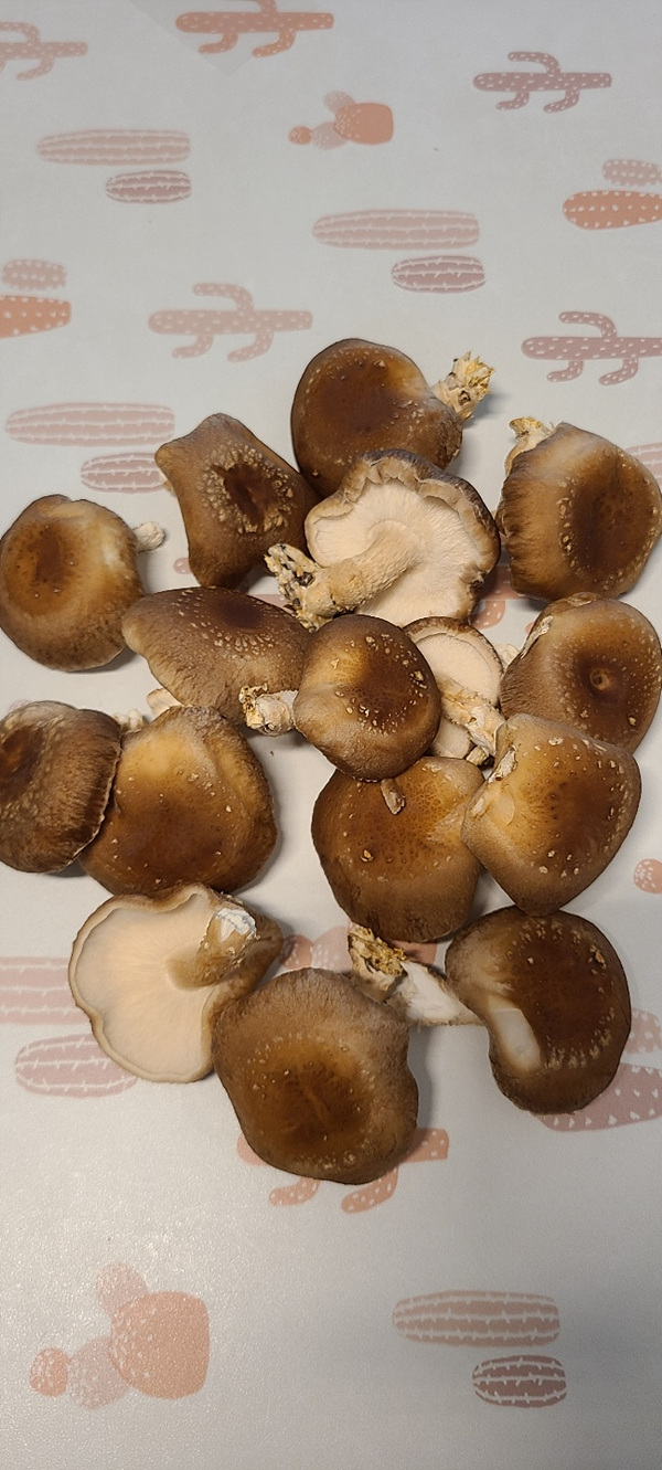 아이와 조심조심 따서 반은 버섯나물로, 반은 말려서 육수용으로 보관 중입니다.